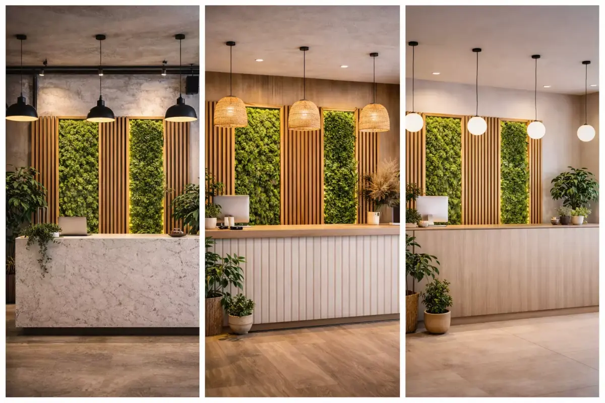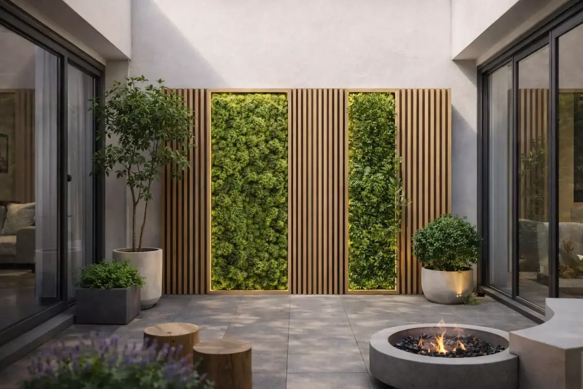 This high-quality architectural wall decor asset features a modern combination of vertical wooden slats and integrated green wall panels. Designed for contemporary interior and exterior visualization projects, it brings a natural, elegant, and premium atmosphere to any architectural scene.