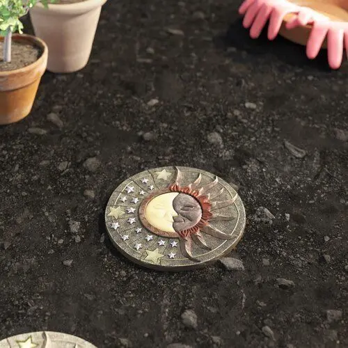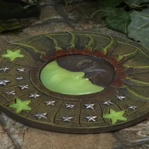 - Light up your front walkway or backyard garden path with this charming stepping stone. Showcasing a sun and moon pattern, this lovely piece is the perfect accent for any outdoor space.