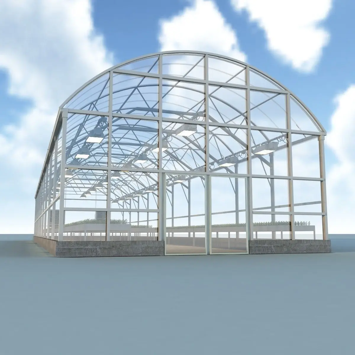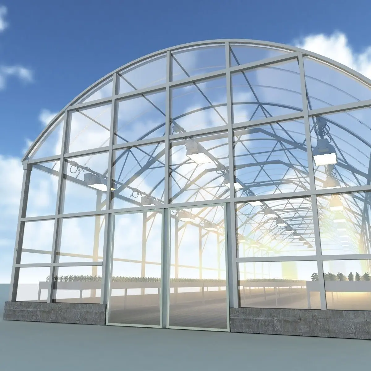 Fully detailed, textured model Solar Greenhouse with lamp and plant