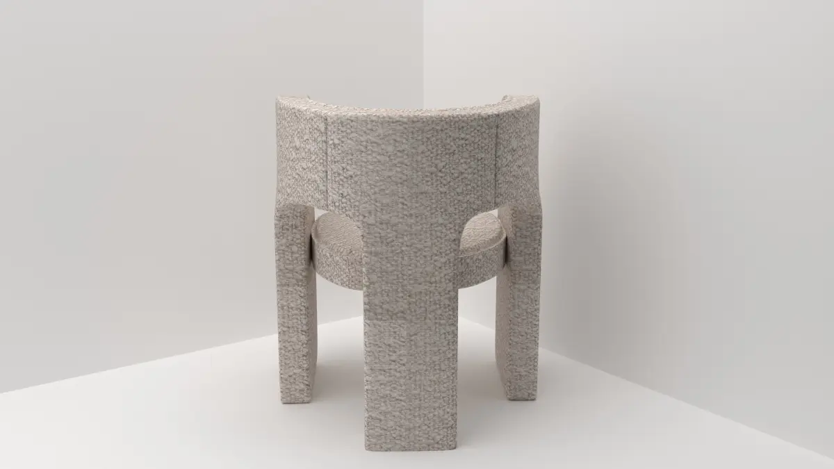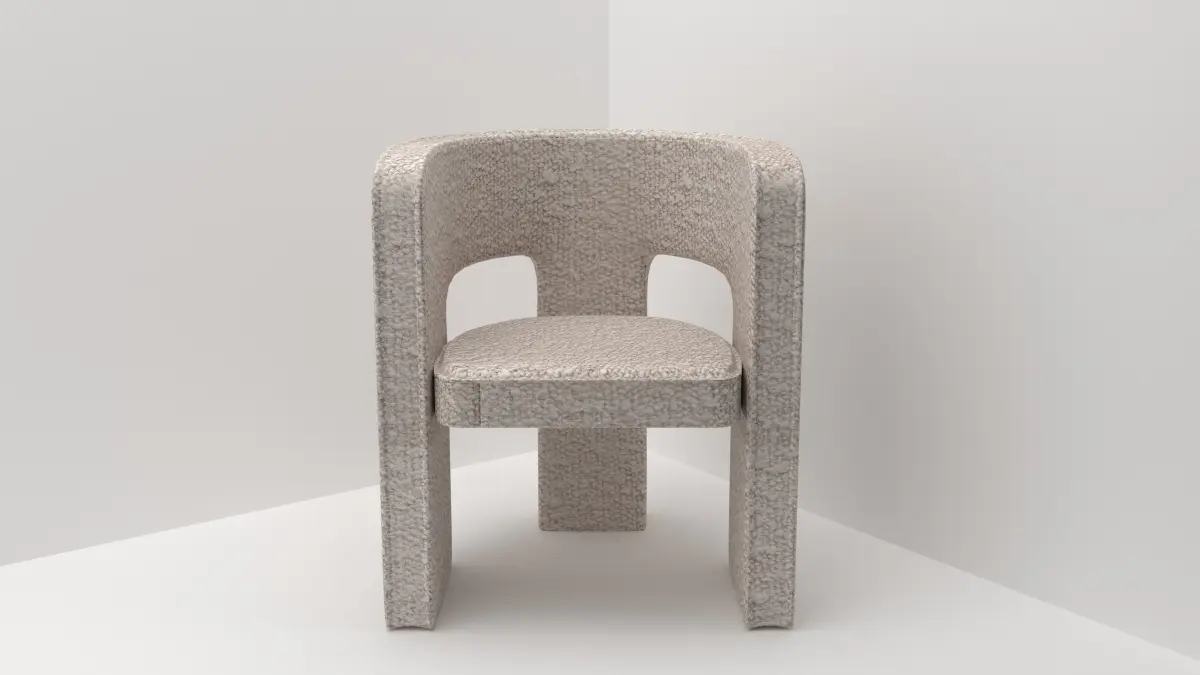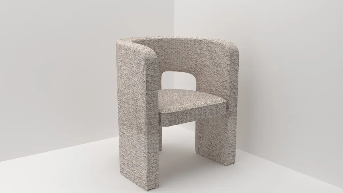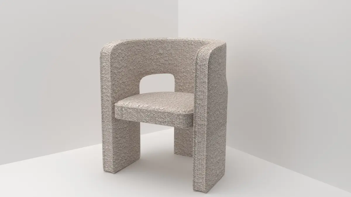 -Our beautiful Greenwich chair features curved backrest and armrests together with blocky legs for an eye-catching complement to your dining/living space.-Well-cushioned seat and upholstered in beautiful light taupe boucle fabric makes the chair an ideal choice for your cosy home.This chair is rendered Corona Renderer