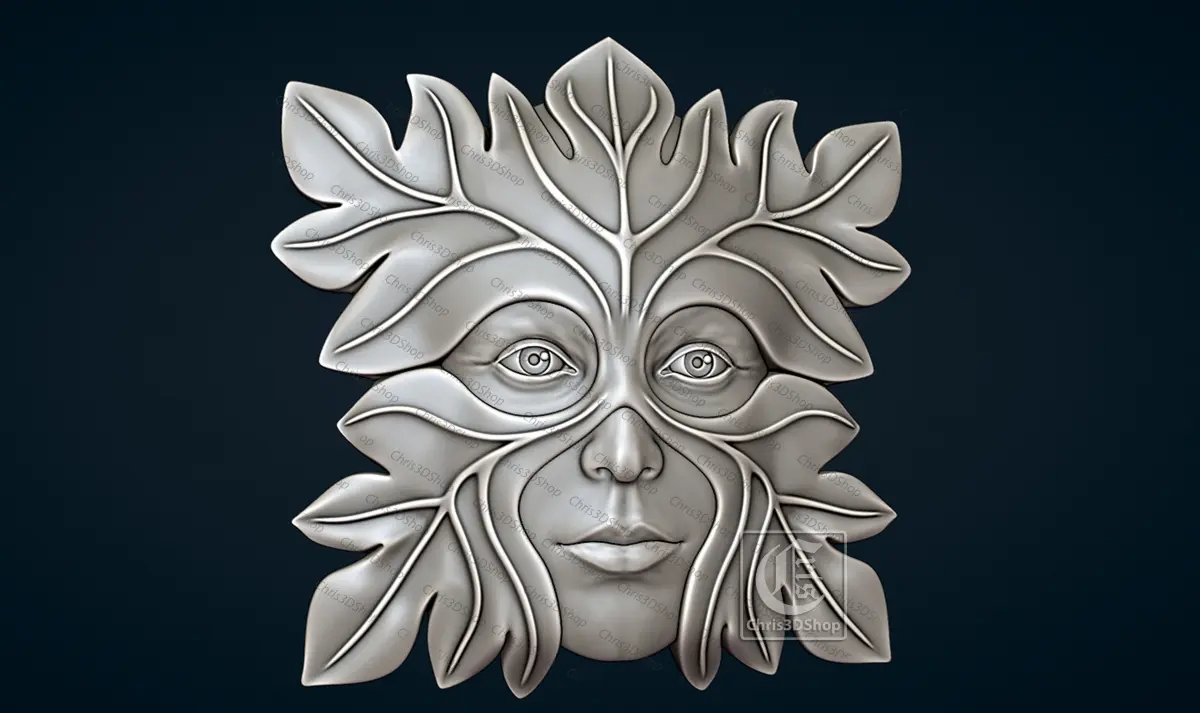 Green Woman- 3D STL files that can be used with Aspire, Vcarve, Carveco, Artcam or any other software that allows you to import the Stl file format, to be carved from wood with a CNC Router.