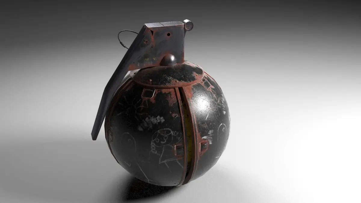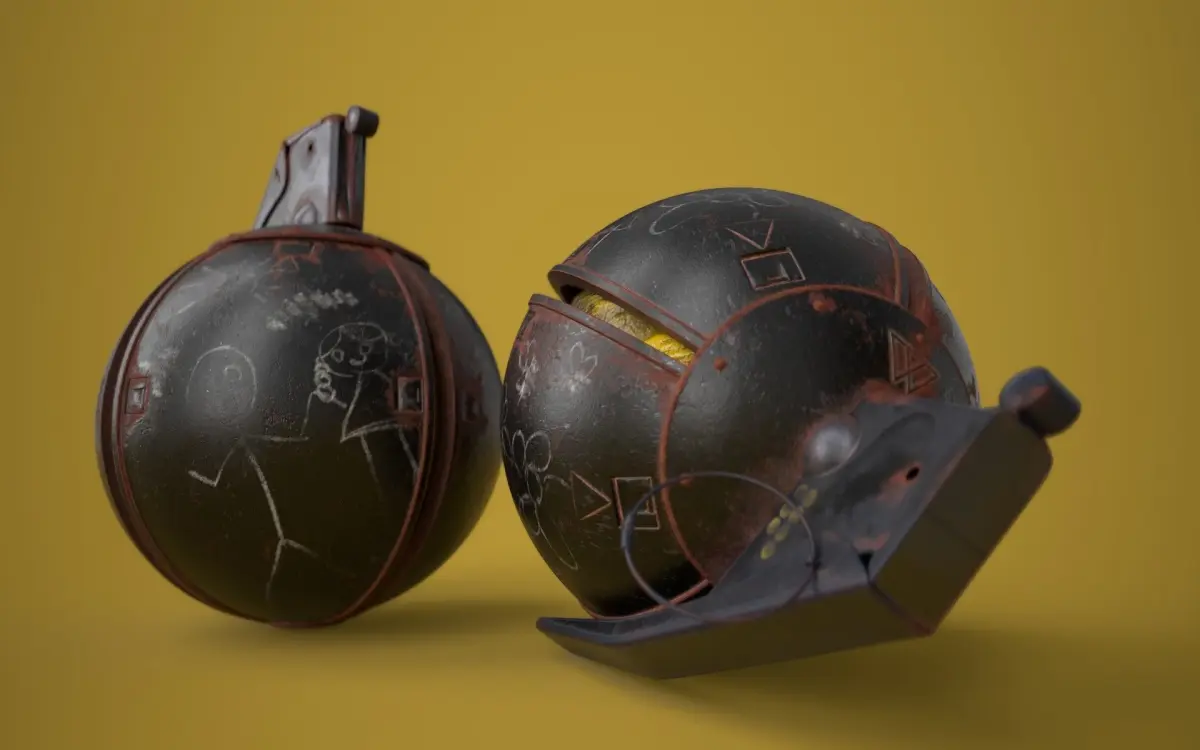 This is a concept grenade design. it contains three parts such as top section, outer shell, and core. I made the core visible through the outer shell and made it a yellow color. but it's changeable.