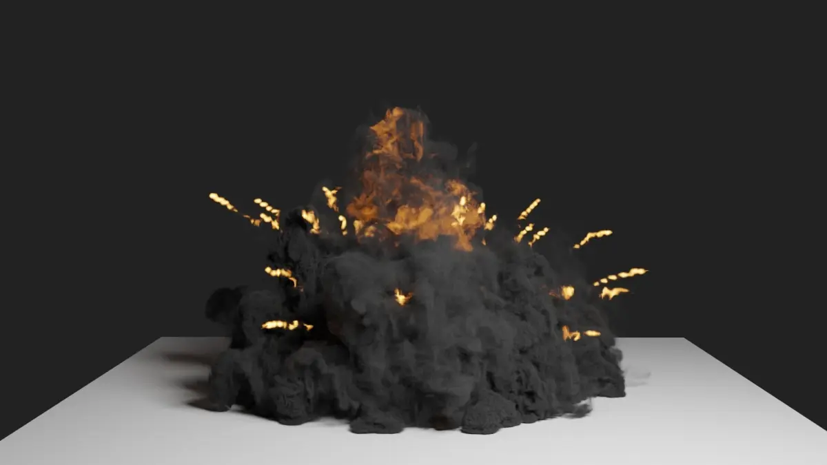 190 frame animation.Rendered in cycles and simulated in blenderKhaos addon was used to help set up the explosion.There is a material that will work for blender as seen in the preview images.the cache is in openVBD format which means you can import it into almost any modern software.the smoke begins to desolve over time which adds to realism.you can add more detail in blender by increasing the noise.can be used in vfx easily by making the background transparent and setting the ground to shadow catcher.The simulation has added burning debris which is basically just simple wood models launched from the explosion.I already have another explosion model up if you want to check it out on my page. Gonna be making a few more explosions which will hopefully become a collection at some point so keep your eye out if you're interested.(had to seperate the noise files into three zips because the file was too big, just put them back in a folder together and it will work fine.)