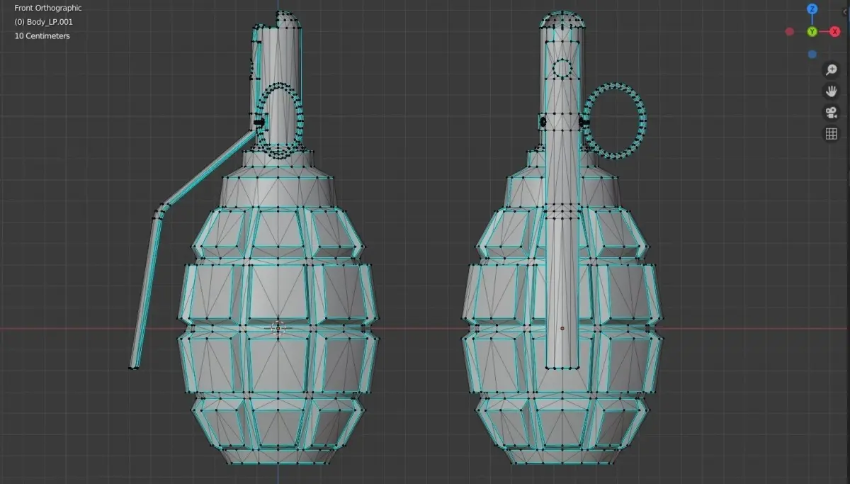 - The body of the grenade is assigned as a parent for other parts;