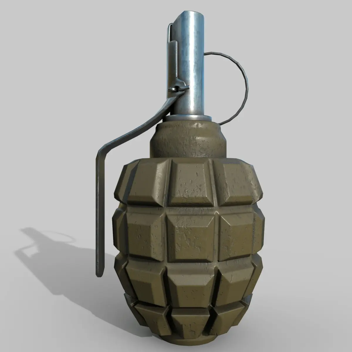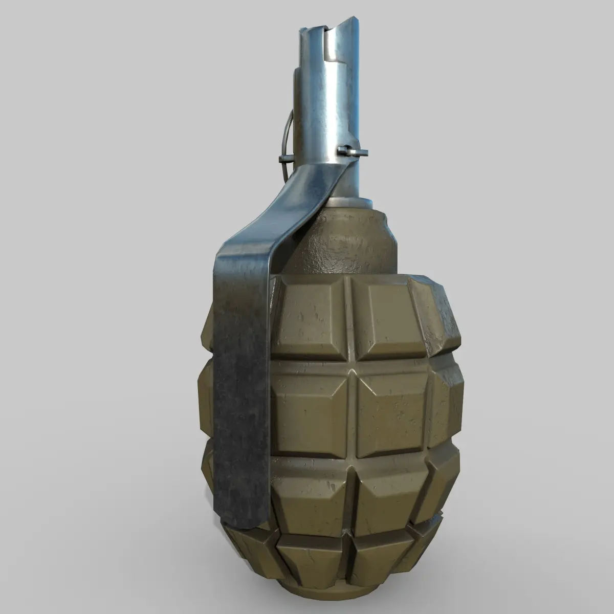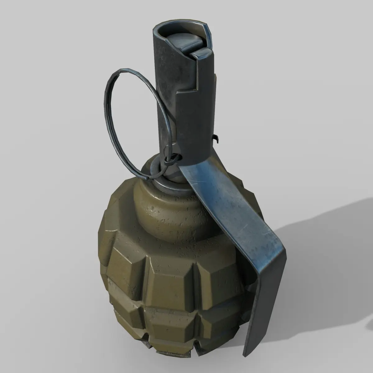 The Soviet F-1 hand grenade (Russian: Фугасный), is an anti-personnel fragmentation defensive grenade. It is based on the French F1 grenade and contains a 60-gram explosive charge (TNT). The total weight of the grenade with the fuze is about 600 grams. LowPoly model(Game Ready)Created in Blender. Baked and painted in Substance painter.Render Iray. Mesh rendered Cycles. This model can be used for: game development, education, product presentation, personal projects and commercial projects.The archive contains a separate texture folders for Unreal Engine and Unity.File .blend contains highpoly and lowpoly model versions.