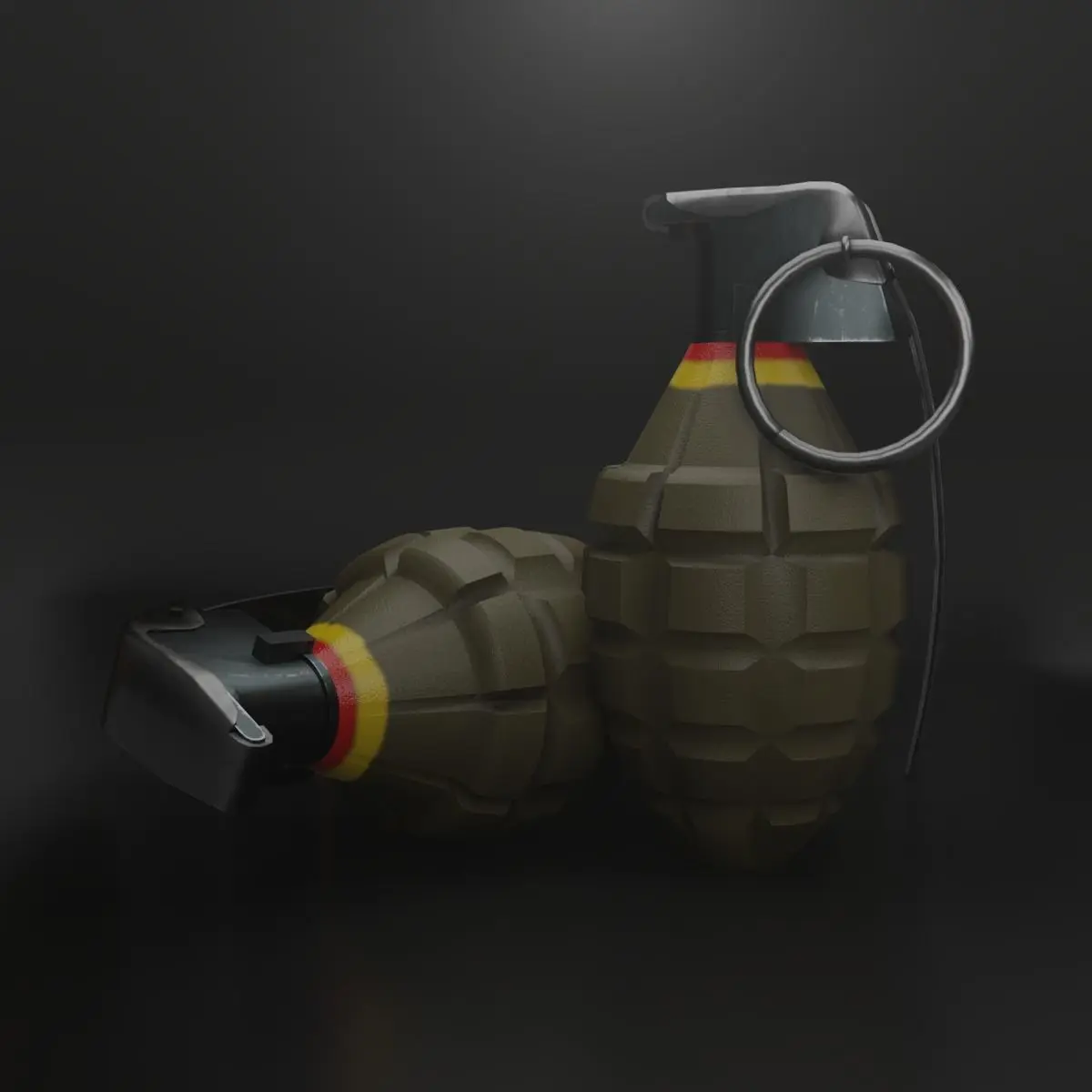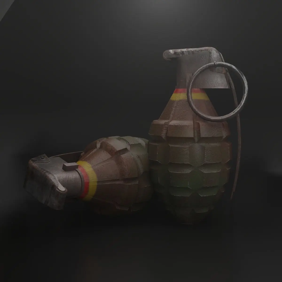 The grenade model is made in blender and textured in substance painter .*The model is made in blender and scene setup is made in blender.*There are 2 types of grenades in this purchase one is realistic and another one is stylized.*The models are optimized for games both AAA titles and for mobile lowpoly*There are 2 textures you can find in download page one is realistic grenade and stylized grenade ,in that folder you can see the 4k,2k and 1k textures of the respective folders.*There are 3 types of texture resolution 4k,2k and 1k to use in all type of games.*The model is correctly separated in realtime so it is easy to animate in games.*The model coordinates are set to 0,0,0.*The model is in real time size .