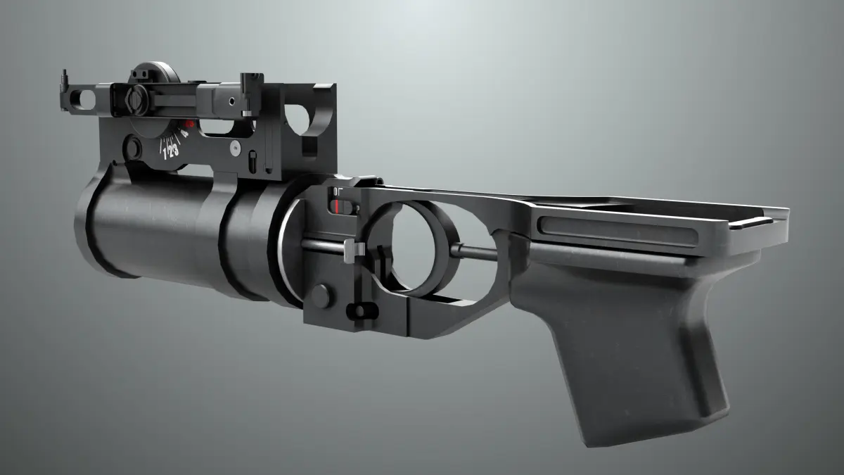 The Photorealistic 3D model of Grenade Launcher 03 Black Generic 3D Model. This model is suitable for any visual production - broadcast, high-res film close-ups, advertising, games, design visualization, forensic presentation, etc.