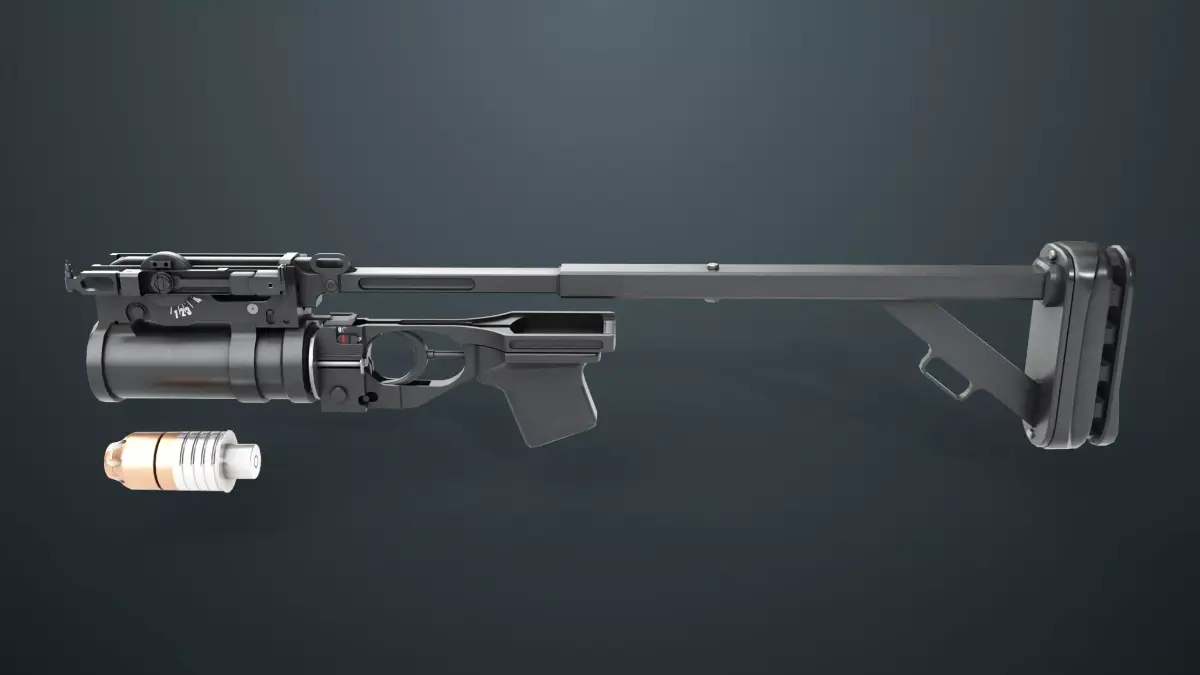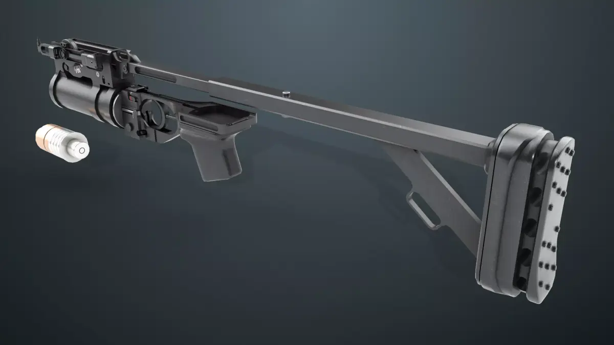 The Photorealistic 3D model of Grenade Launcher 03 Black Standalone Generic 3D Model. This model is suitable for any visual production - broadcast, high-res film close-ups, advertising, games, design visualization, forensic presentation, etc.