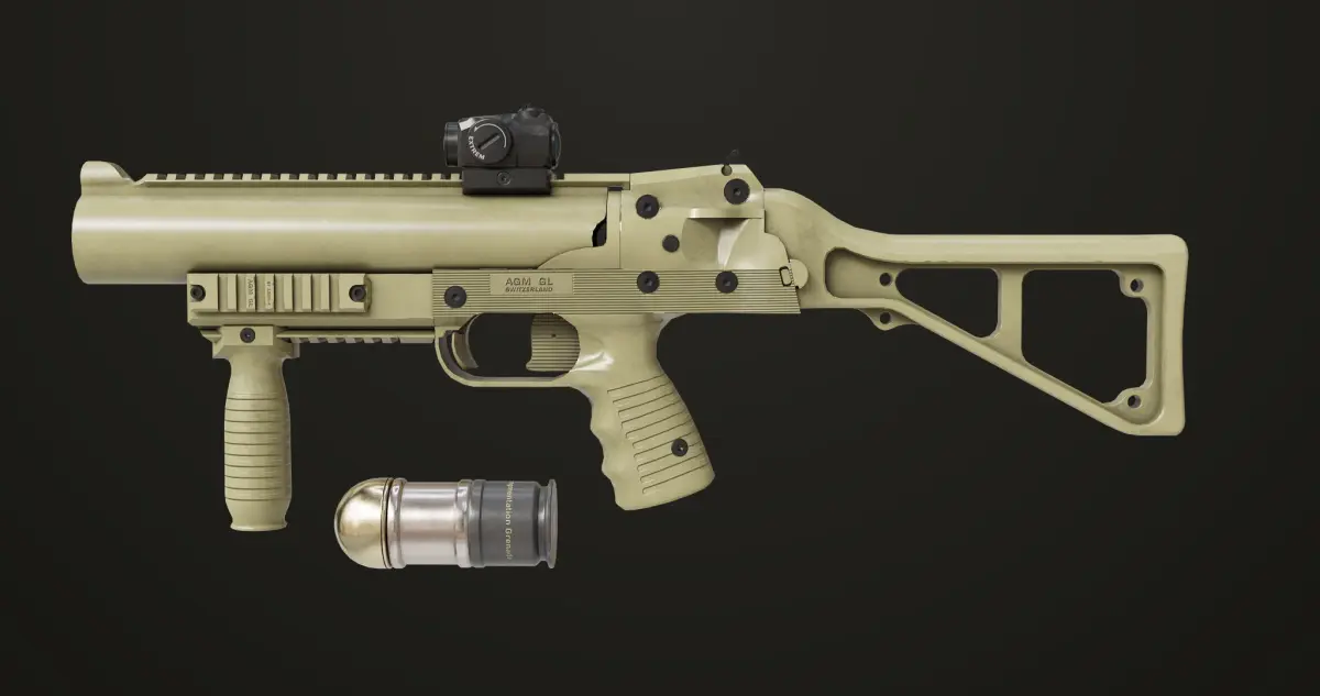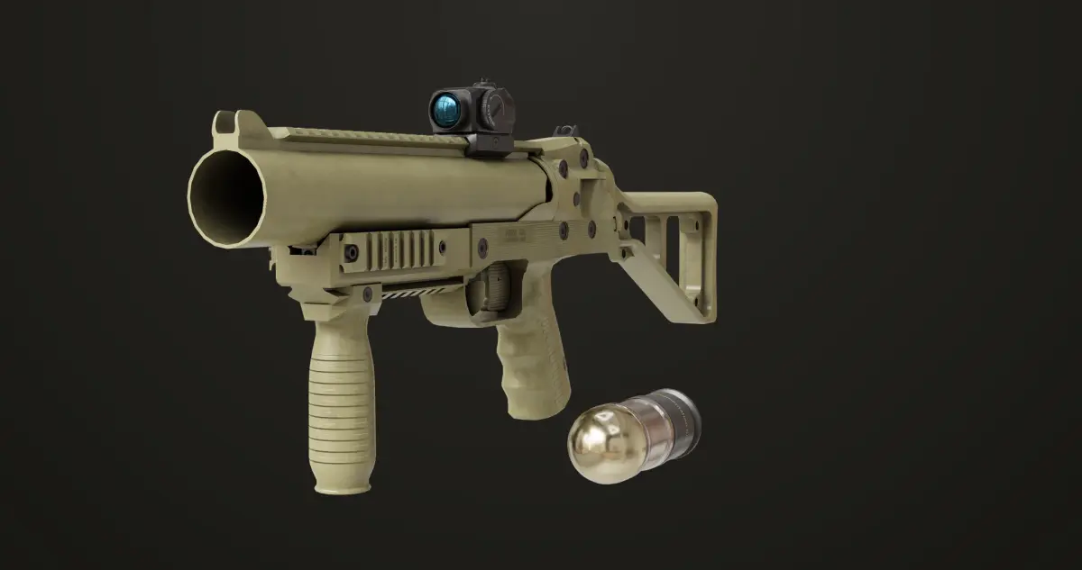 The Photorealistic 3D model of Grenade Launcher 06 Brown Generic 3D Model. This model is suitable for any visual production - broadcast, high-res film close-ups, advertising, games, design visualization, forensic presentation, etc.