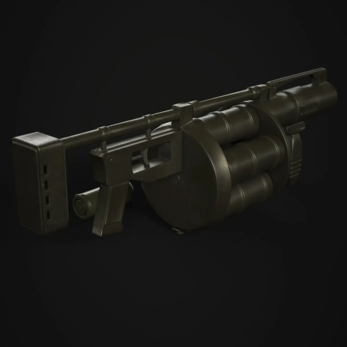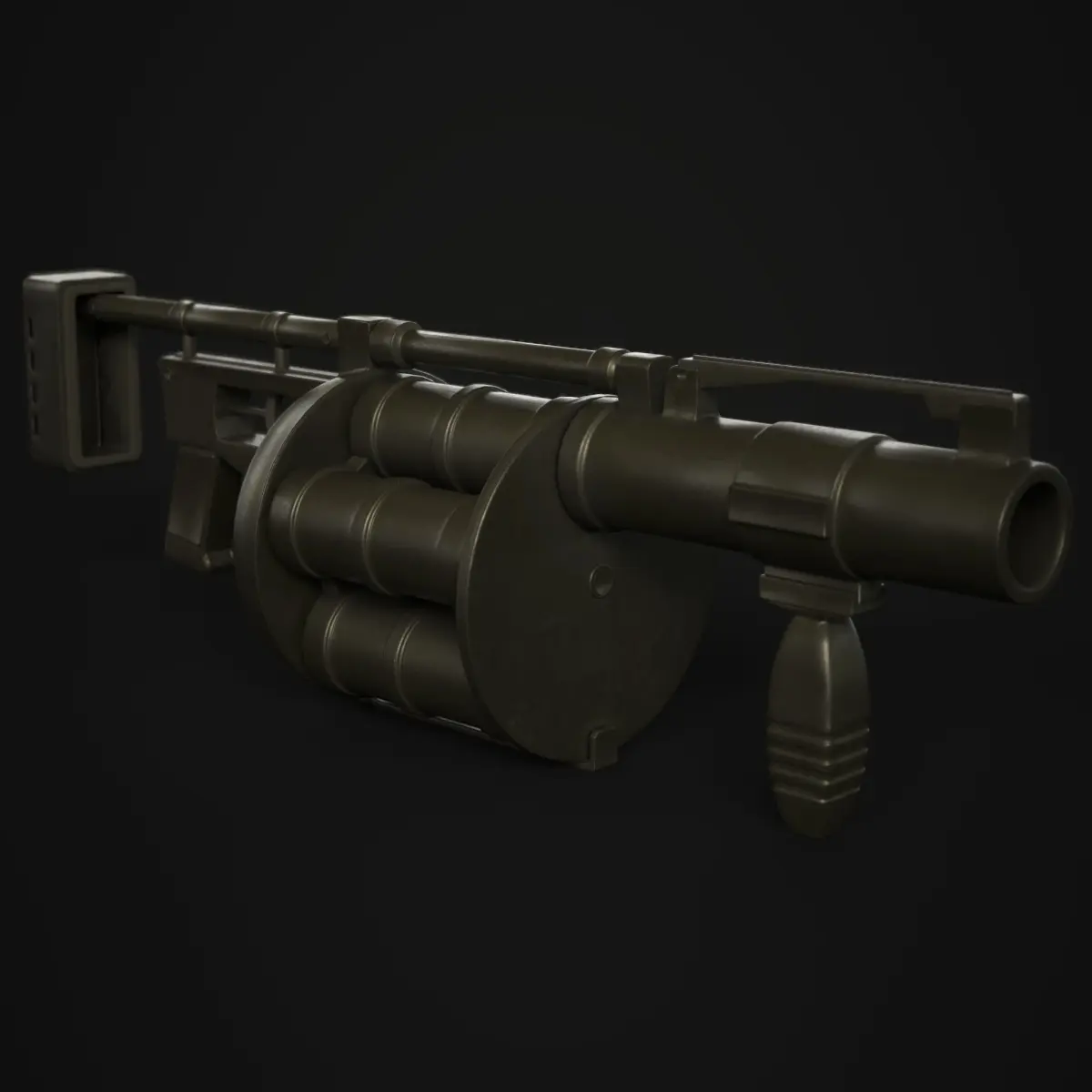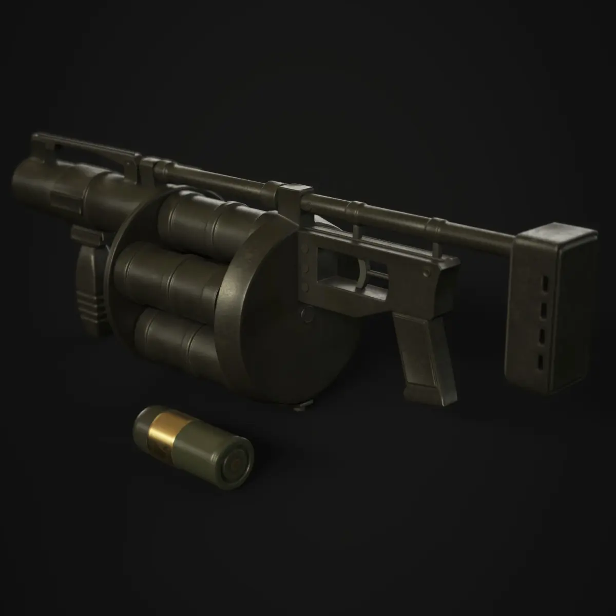 -Game ready low poly Grenade Launcher made using high to low poly baking. Comes with grenade ammunition. Barrels are set up to properly rotate, Stock has proper pivot to rotate for reloading animation.