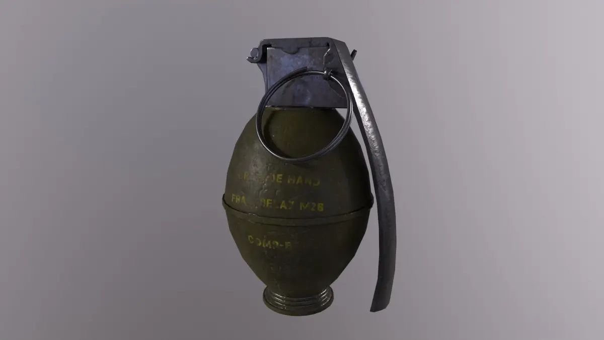 Grenade M-26 with PBR material, low-poly. The 3d model has PBR materials, optimized mesh and ready for use in the game engine projects. It is ready to use, just put it in your scene. All textures are in 2k resolution. There are: Albedo, Normal, Roughness, Metalness, Bump, AO maps and more. Enviroments and lighting setups are not included, but let me know if you want them. If you have any queston about format , contact me please. Please don't forget to rate the model, for us it is very important. Total number of polygons: 3464 (quad), vertices-3474, tris-6924. Formats: c4d, obj, fbx , stl, blend, dae, 3ds.