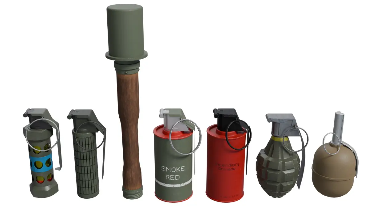 (Only the Low Poly version of the stick grenade is included in this set.)