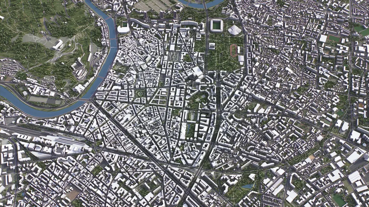 - Full city extents up to 100 x 100 km — or crop to an area of interest for better format compability and scene performance