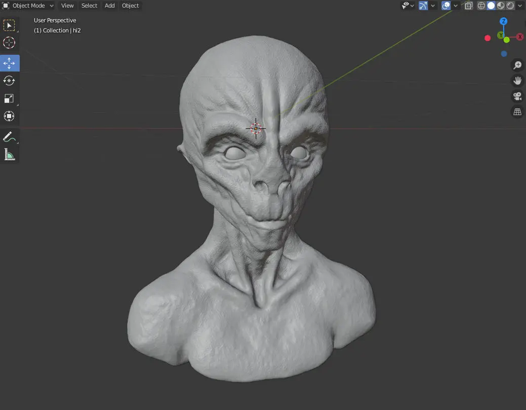 Made a grey alien, only the bust for now, will likely do a full one at a slight markup. Sculpted in zBrush, will need retopo for game use or you can easilly reduce it with a decimate task. Includes Blender file. Modelled by Jonathan Shoesmith.