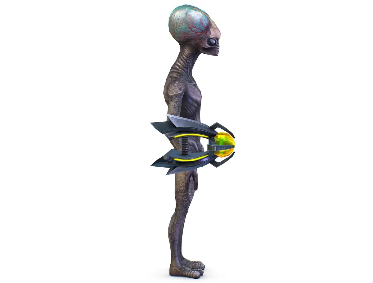 Low Poly Skinny Grey Alien UFO - 512x512 color texture only, no lights 3dsMax file included