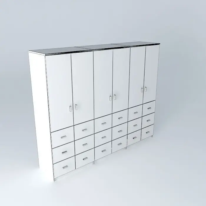 This 3D model was originally created with Sketchup 8 and then converted to all other 3D formats. Native format is .skp 3dsmax scene is 3ds Max 2016 version, rendered with Vray 3.00 2,50x3,00 18 cabinet drawers and doors 06