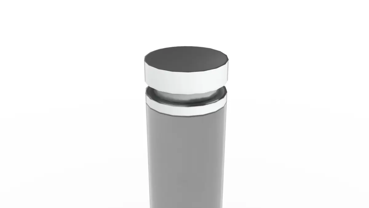 A contemporary grey cylindrical bollard, stainless steel stem with stylish single-collar flat top. Perfect for city or urban landscapes.