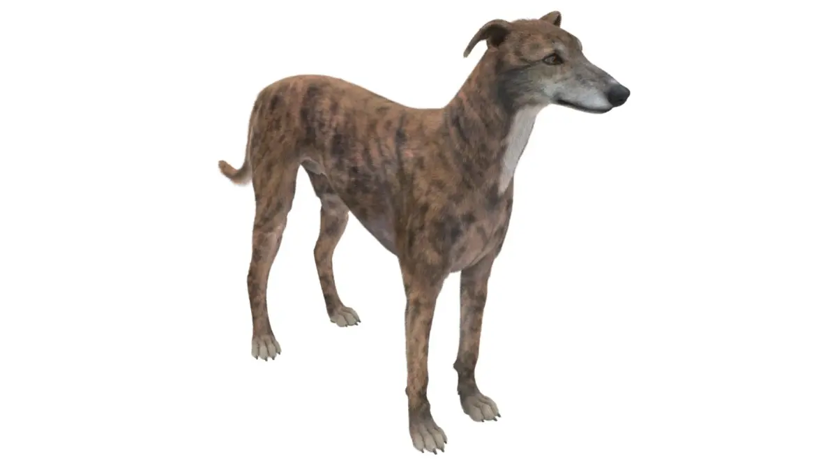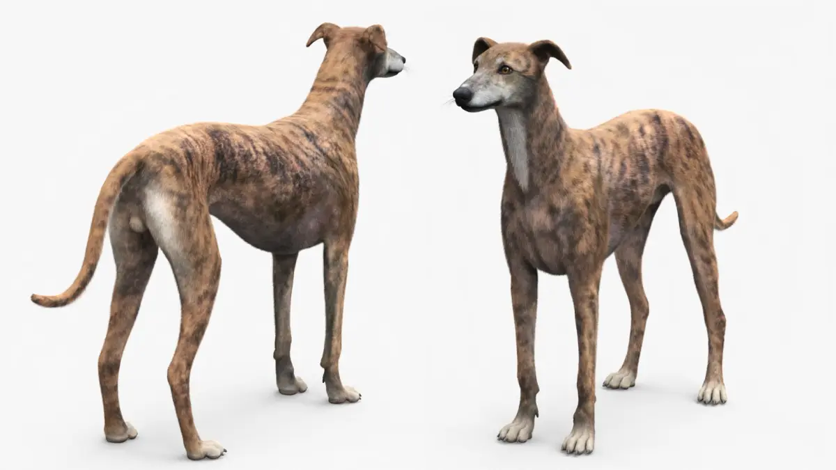 Greyhound Dog Male Brindle Fur for Cinema 4D is a three-dimensional model of Greyhound (Canis lupus familiaris), that is a slender, athletic breed known for its exceptional speed and graceful posture.