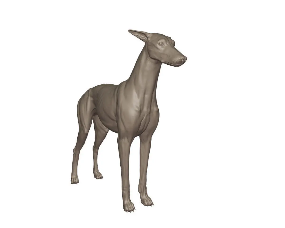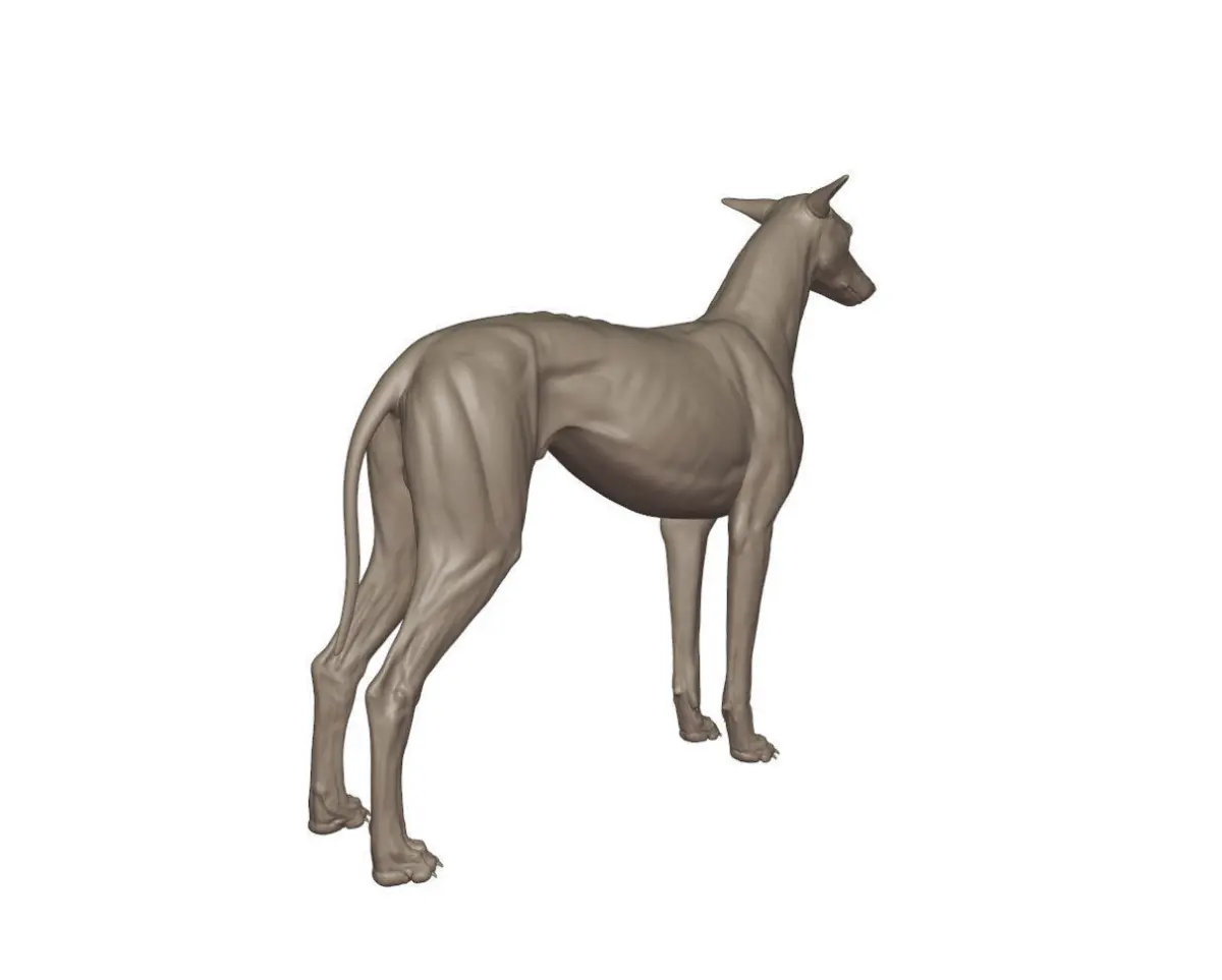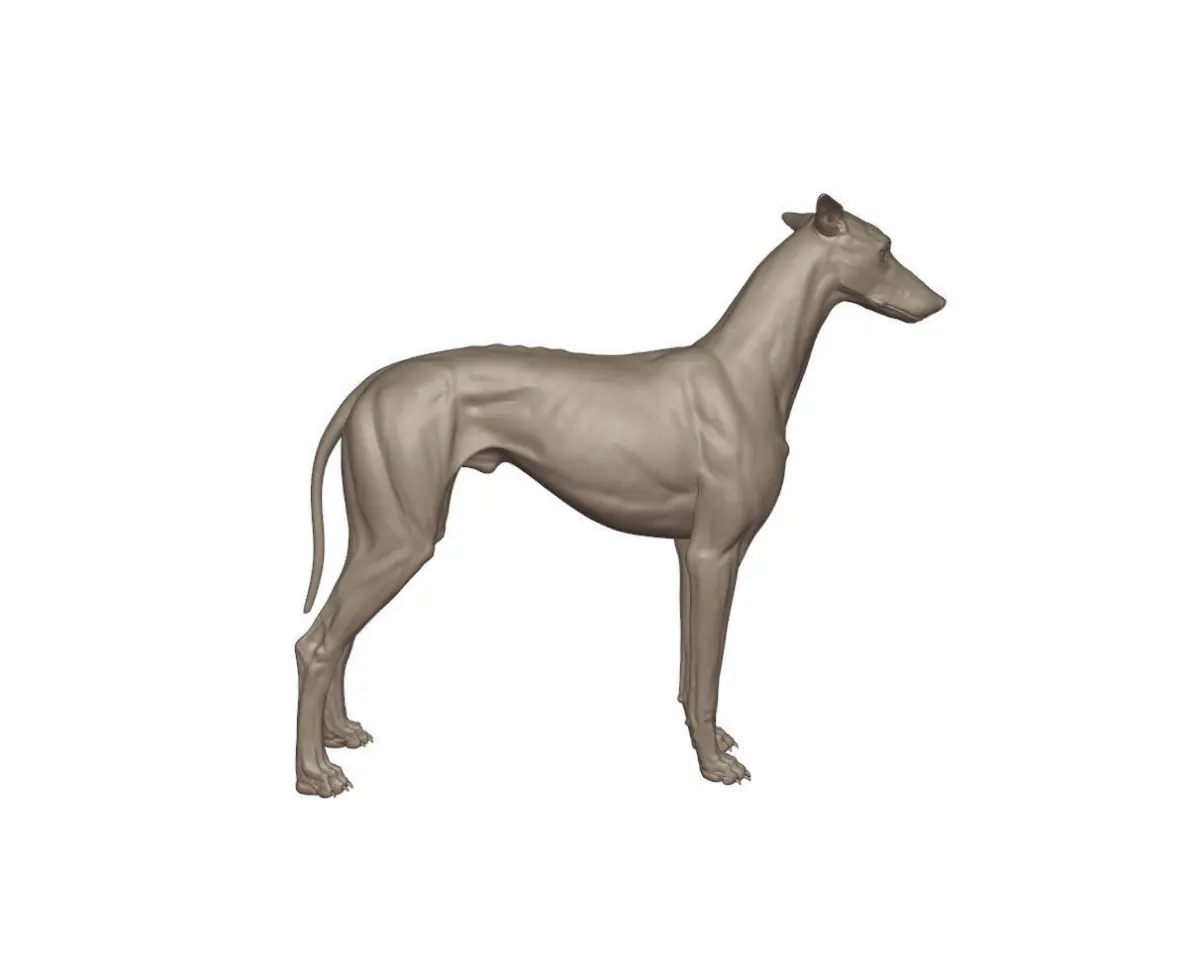 Sculpture of greyhound, made in Blender 2.9. Topology quad-based (for animation), although the model is not unwrapped and not textured either. Sculpted data is stored in the multires modifier.