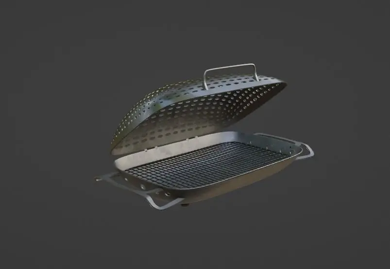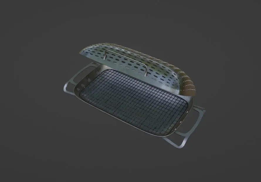 Grill Basket: Cook delicate foods like fish and vegetables on your grill with this grill basket. The basket is made from durable stainless steel and features a hinged lid for easy flipping. Expand your grilling possibilities with this versatile grill basket.My work is your new model in the scene, download and use it!