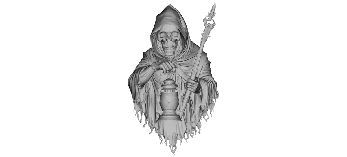 This Grim Reaper with lantern 3D model is a highly detailed sculpt created for dramatic and symbolic jewelry designs. Featuring a hooded skeletal figure holding a lantern and staff, with flowing tattered robes and strong depth, the model is ideal for luxury pendants, gothic medallions, hip-hop jewelry, and enamel or diamond-set pieces. Perfect for jewelers, and manufacturers looking to create bold dark-themed pendants that represent mystery, guidance, and the passage of time.