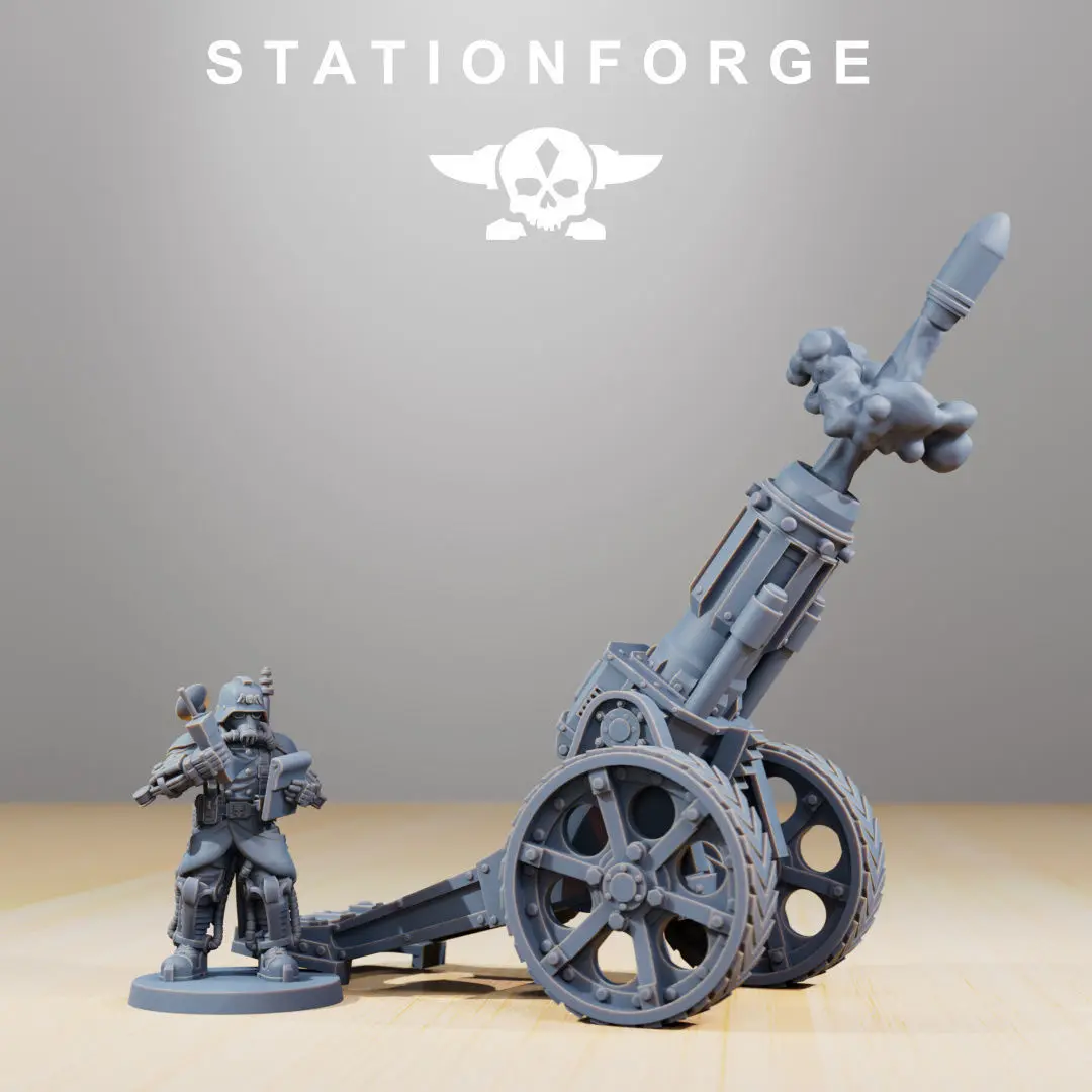 GrimGuard - Light Artillery comes with 3 main light artillery pieces with a 4 man exso-skeleton crew.
