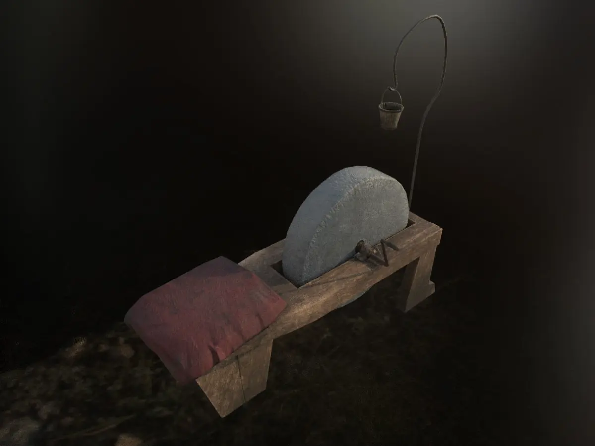 Here is a low poly model of a medieval grind stone made in Blender 2.8.