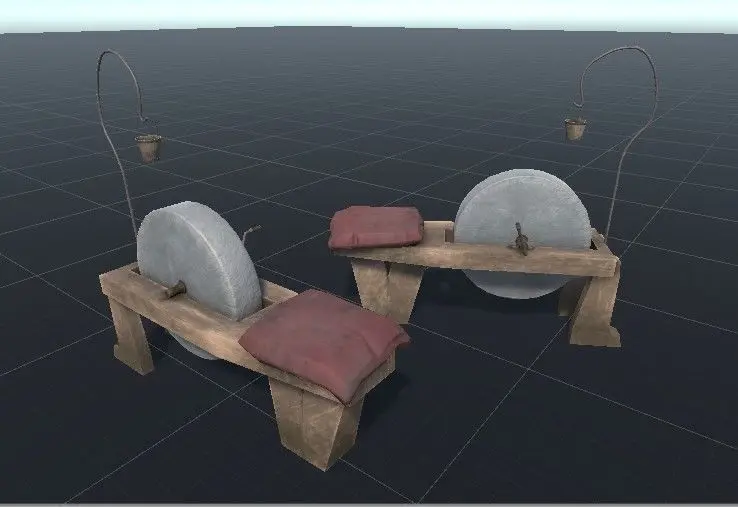 My pack contains the main model of a grindstone and 1 LODs with smaller polycount and archive with textures. The model has PBR textures and will look nice in Unity or Unreal.