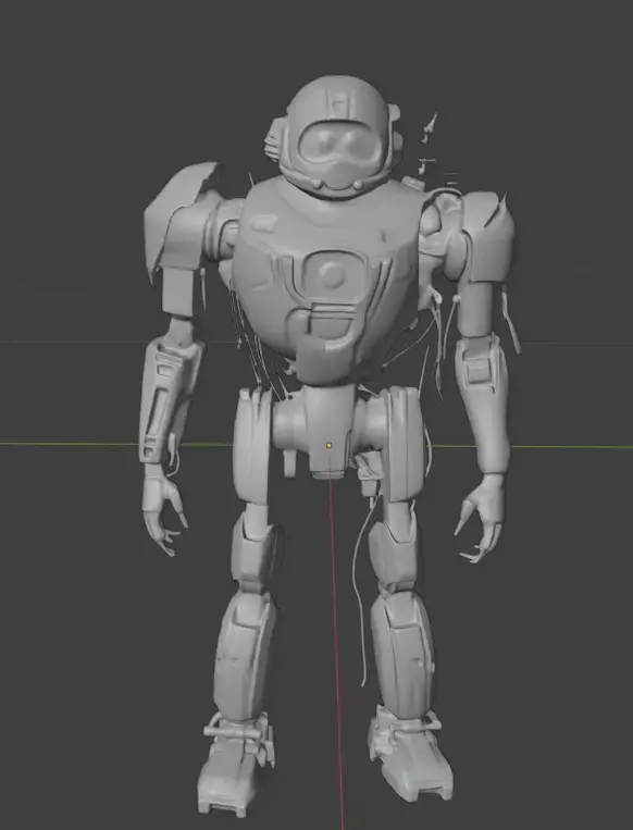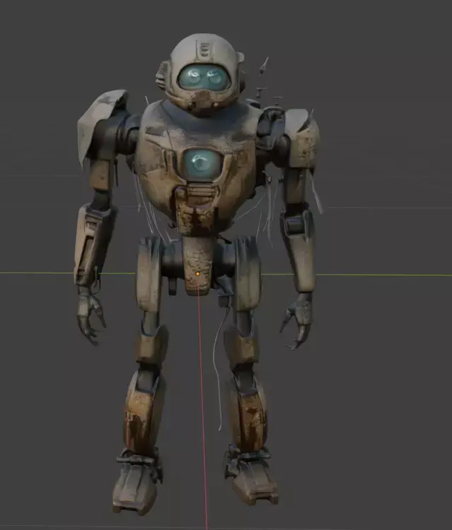 gritty industrial robot with dirty brown metal and blue glass eye cover 3d model