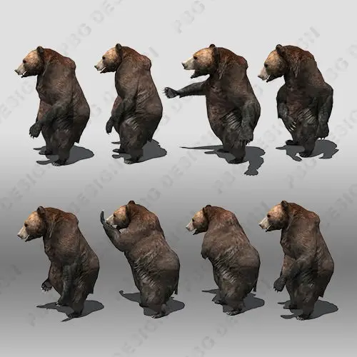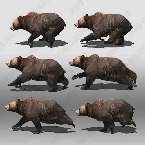 A low poly model of a Grizzly Bear fully rigged and textures. Has facial bones to contol lips, braw and eyelids. Great for games and animations.