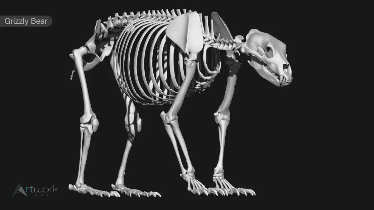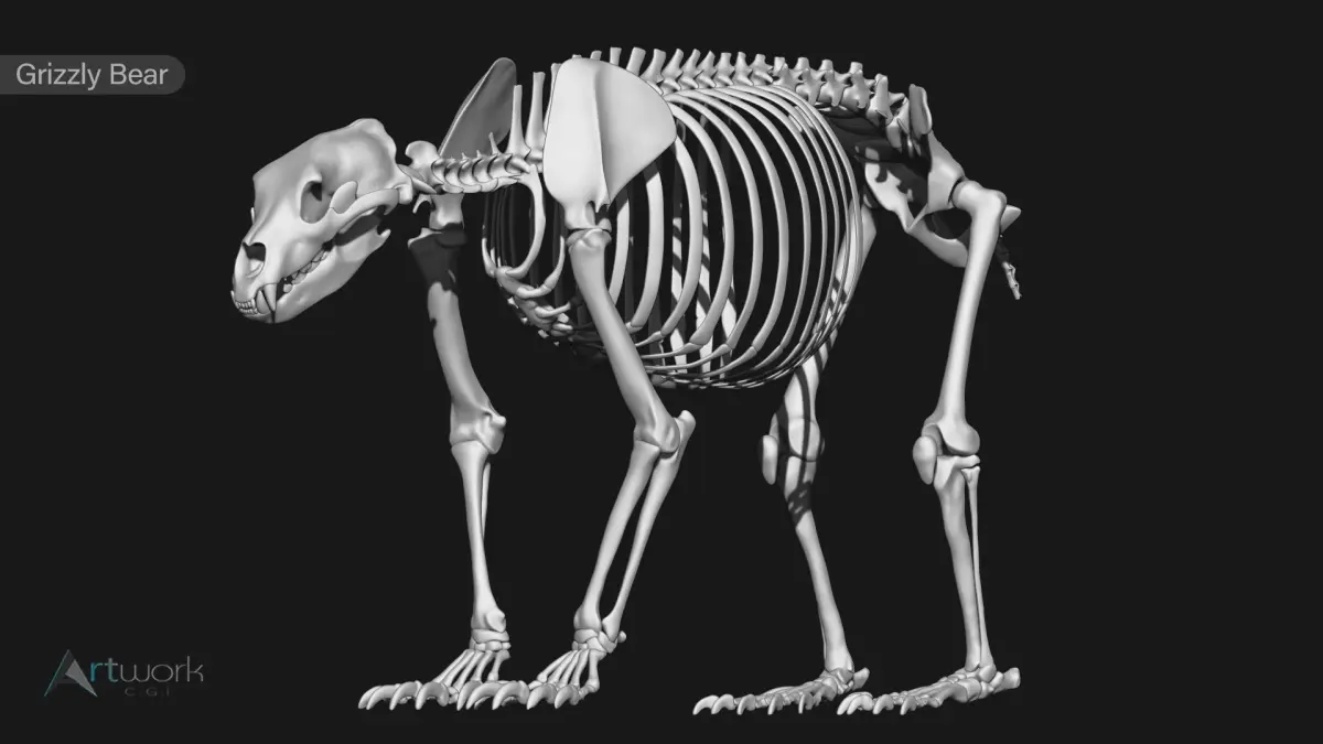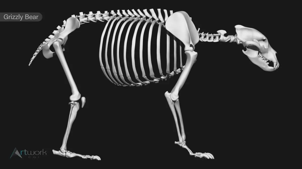 High poly Sculpture of Grizzly Bear skeleton with clean mesh
