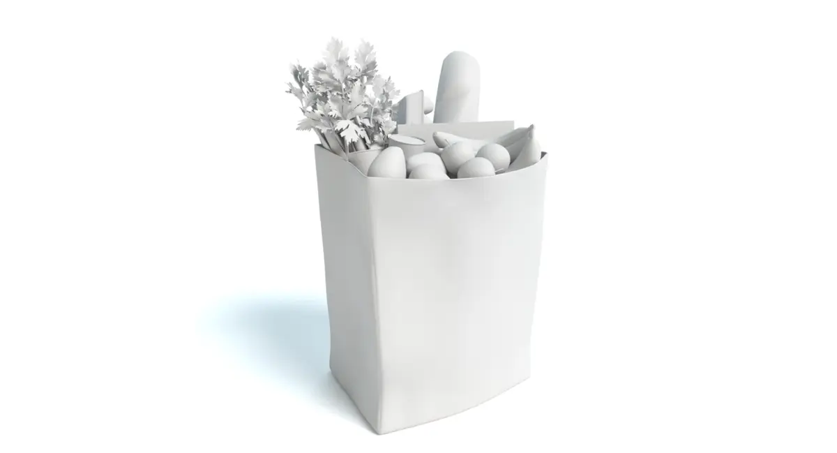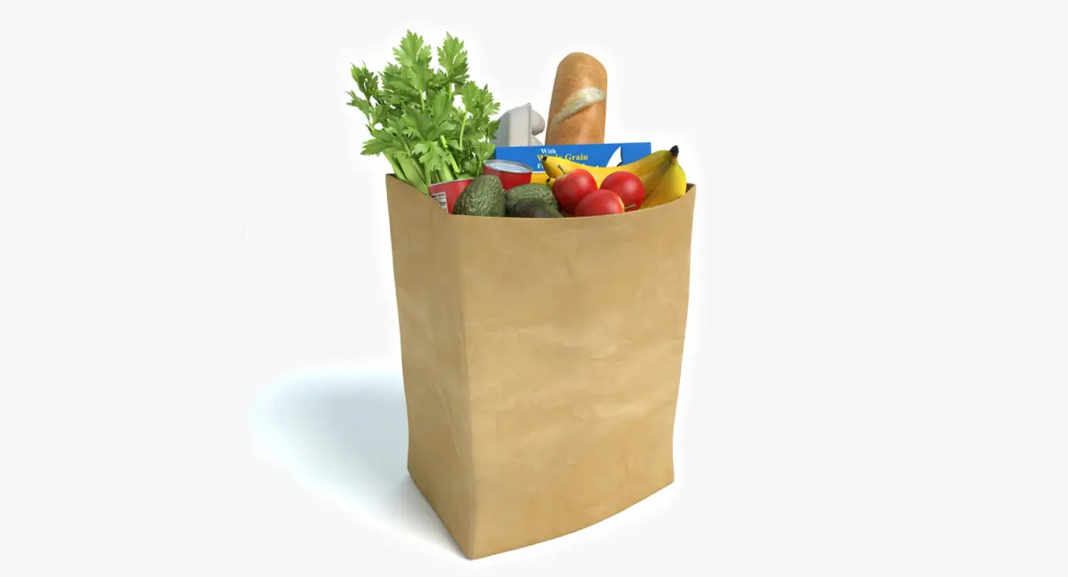 3d model of a bag of groceries. Textures are included.