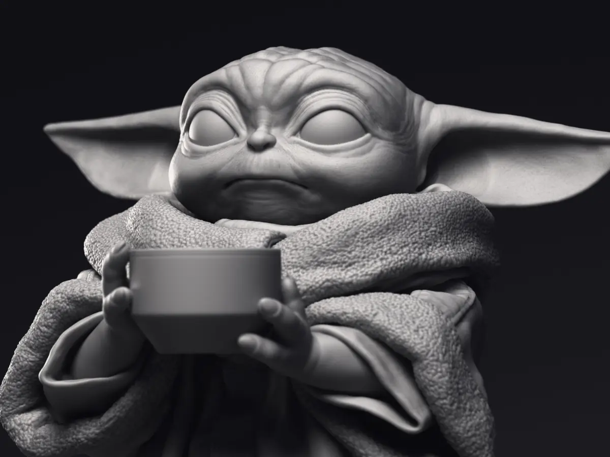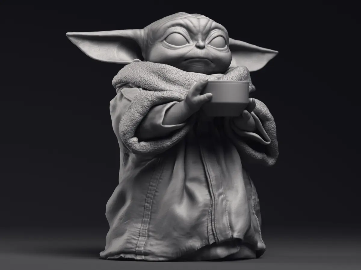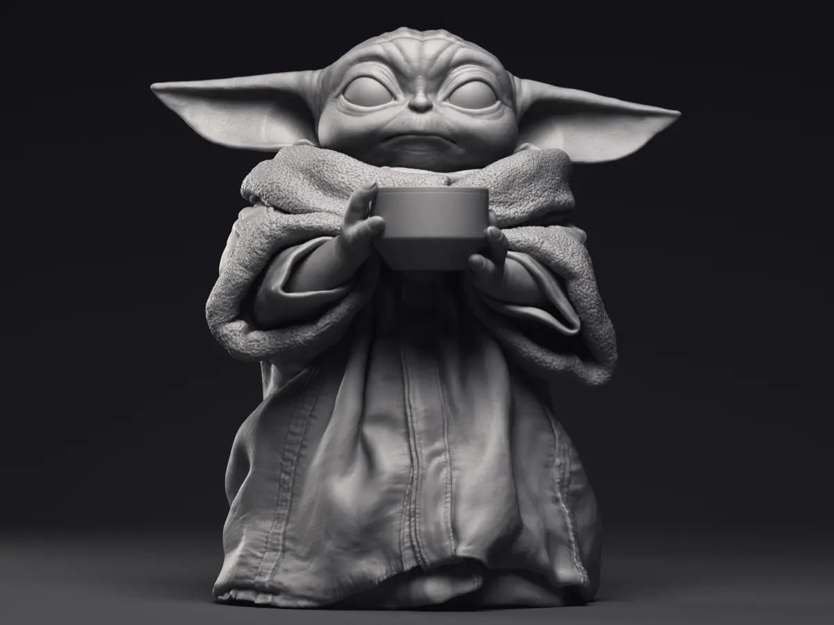 Highly detailed 3D printable model of Grogu Baby Yoda character from the Mandalorian series.