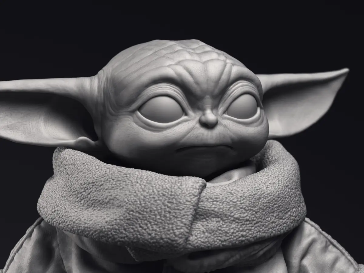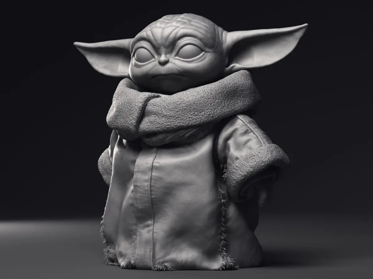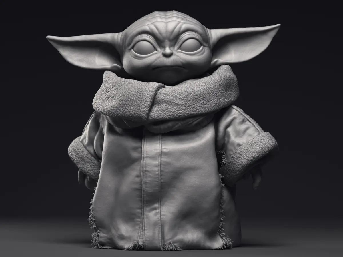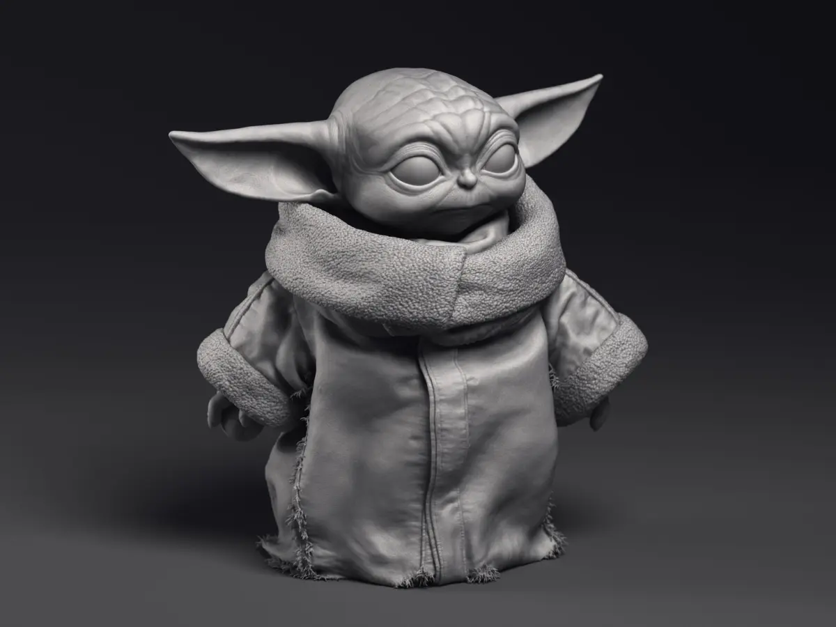 Highly detailed 3D printable model of Grogu Baby Yoda character from the Mandalorian series.