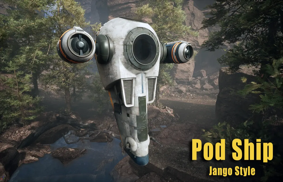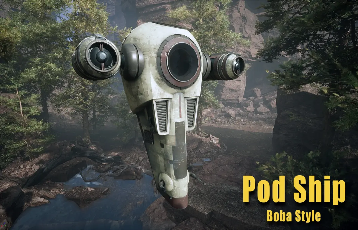 A ship designed to look like it would be used by Grogu. Based on three ships from the movies and shows. Custom made after his time spent with Mando and Boba many years ago. The Ship is scaled to the size of a yoda type character.