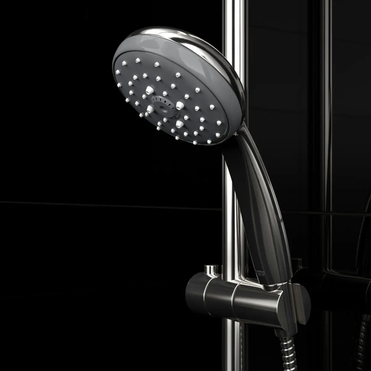 Shower system with switch Grohe New TempestaLength, mm: 390Height, mm: 736Size of the upper shower, mm: 200Size of the watering can, mm: 100Hose length, mm: 1500Shape: RoundMaterial: Chrome, plastic