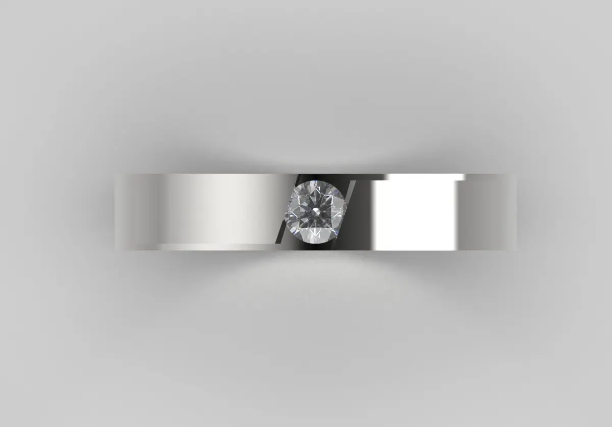 Its simplicity combined with the prominent diamond creates a timeless piece that exudes sophistication and modern appeal, perfect for those who appreciate luxury.