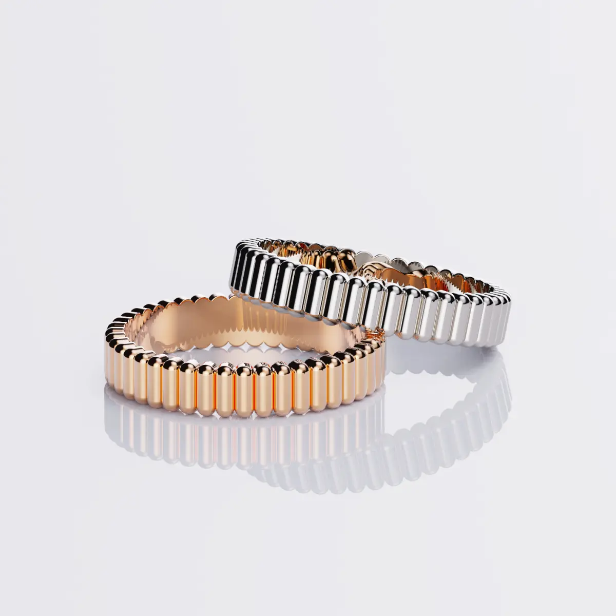 This collection of rings is ready for 3D printing.Ring sizes 15.5 16 16.5 17 17.5 18 18.5 19 19.5 20 mm. Approximate weight of rings by size(GOLD 14K): 15.5mm-3.4g 16mm-3.5g 16.5mm-3.59g 17mm-3.69g 17.5mm-3.79g 18mm-3.88g 18.5mm-4.02g 19mm-4.12g 19.5mm-4.21g 20mm-4.31g. Width - 4 mm. Thickness - 1.5mm. I can make to order with your parameters.