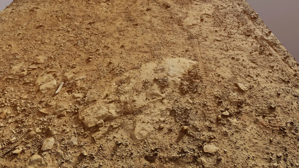 Hi res photoscan of a rocky, sandy ground surface. Model comes with 16384x16384 Albedo, AO Detail_Normal, Normal and Roughness Map