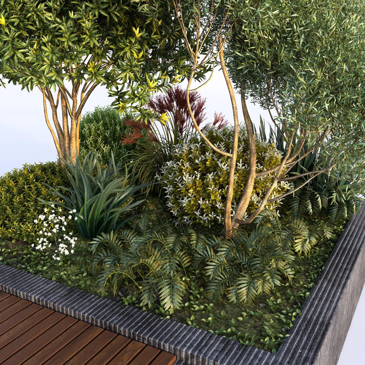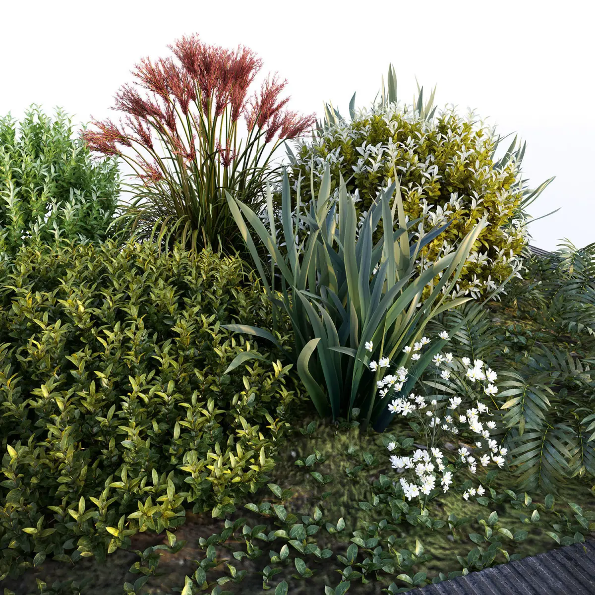 Collection of outdoor & indoor plants trees bush grass & ferns