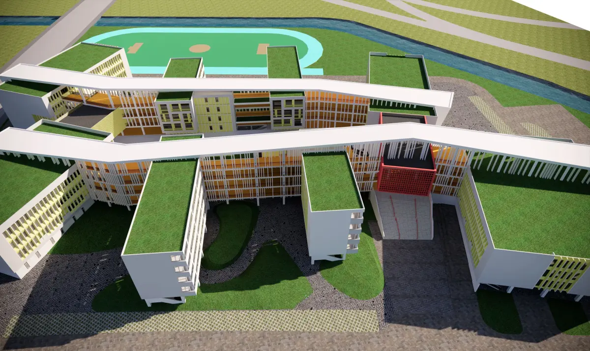 [ school]The school's academic building is made up of two corridors connected in series, like two branches growing leaves one after another, indicating that the school building brings a beautiful vision of prosperity to the student body.Renderer: Enscape 2.3