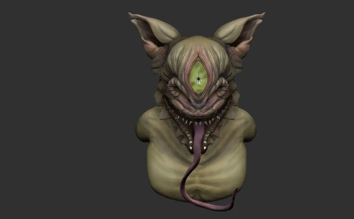 3D sculpt in ZBrush by Studio Sandier - Based on my own 2D artwork, made as a proof of concept for a bestiarium. The creature is sculpted and polypainted in ZBrush, and is supplied in the highest polycount possible. You could use this for 3D printing, as a base to model a body on, or just to put it on your background, if you like to get scared everytime you open up your computer. If you want the model at a lower resolution, this is possible, just send me a message :).