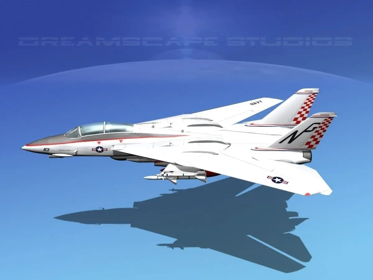 The Grumman F-14D Tomcat is a supersonic, twin-engine, variable sweep-wing, two-place strike fighter. The F-14D is either a remanufactured F-14A or new production aircraft, both equipped with F110-GE-400 engines, new radar, and new avionics systems. The first production F-14D was flown on February the 9th, 1990. The aircraft can carry the short, medium and long-range air-to-air missiles AIM-9, AIM-7 and AIM-54, and air-to-ground ordnance including the Rockeye bomb and CBU cluster bombs.