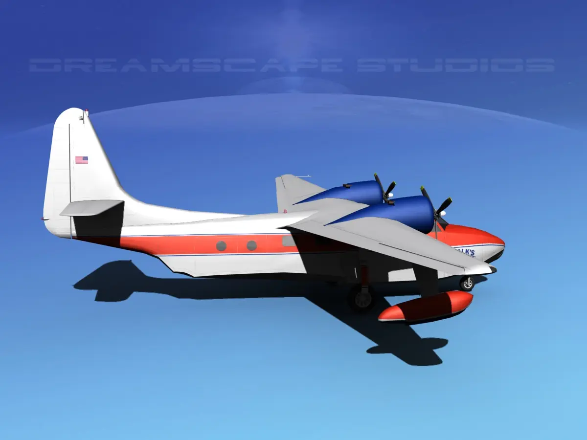 Accurate 3d model created near to scale (within 5%) according to the real reference. Native format is 3ds Max version 13. Model was exported to a wide variety of formats including 3ds, asc, dae, dwg, dxf, lwo, obj, and u3d. Other formats are exported in one resolution. This can be further subdivided. Exported formats (3ds, lwo and obj) are prepared well to work correctly with every standard modeling software. Compatibility level with other software’s may be limited.Textures are included with all files.Previews were rendered using 3dsmax standard scanline.Model unit is variable depending on the model and references. It has a realistic appearance and animateable features including ailerons, flaps, elevators, rudder, propellers, and landing gear retraction..The Grumman G-73 Mallard is a medium, twin engine amphibious aircraft.