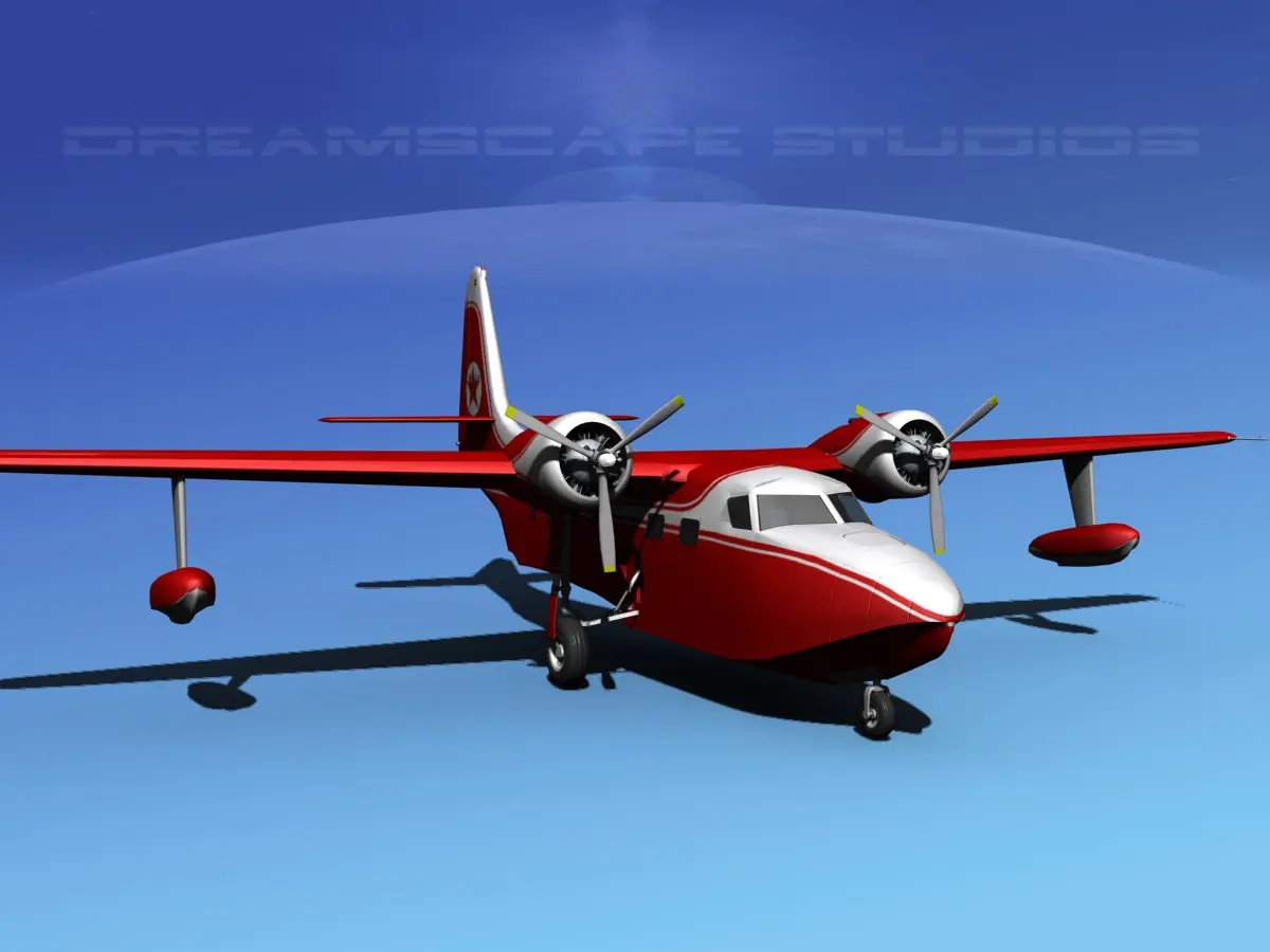 Accurate 3d model created near to scale (within 5%) according to the real reference. Native format is 3ds Max version 13. Model was exported to a wide variety of formats including 3ds, asc, dae, dwg, dxf, lwo, obj, and u3d. Other formats are exported in one resolution. This can be further subdivided. Exported formats (3ds, lwo and obj) are prepared well to work correctly with every standard modeling software. Compatibility level with other software’s may be limited.Textures are included with all files.Previews were rendered using 3dsmax standard scanline.Model unit is variable depending on the model and references. It has a realistic appearance and animateable features including ailerons, flaps, elevators, rudder, propellers, and landing gear retraction..The Grumman G-73 Mallard is a medium, twin engine amphibious aircraft.