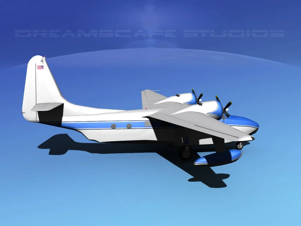 Mallard is built very near to scale and is available in many formats. It has a realistic appearance and is fully textured. It has animateable features including ailerons, flaps, elevators, rudder, propellers, and landing gear retraction..