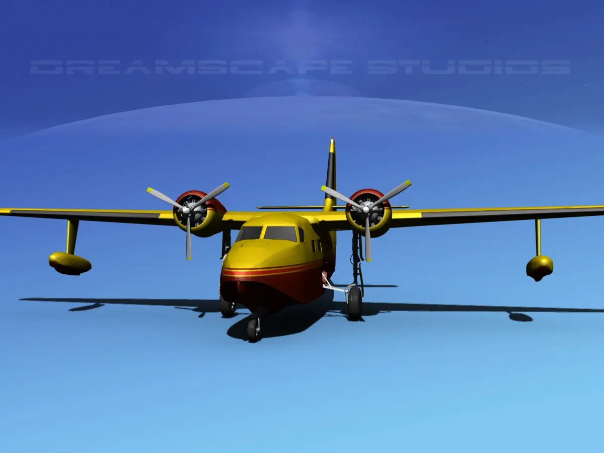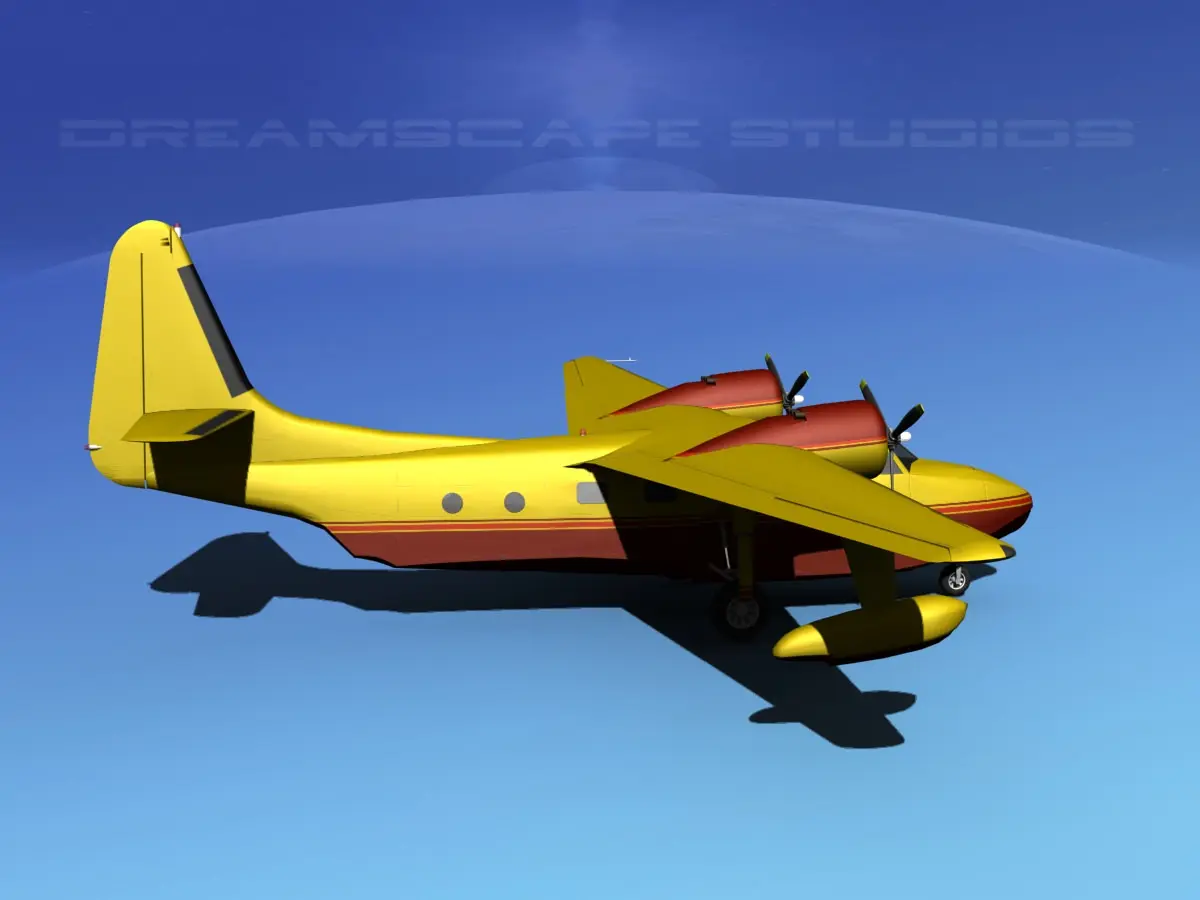 Accurate 3d model created near to scale (within 5%) according to the real reference. Native format is 3ds Max version 13. Model was exported to a wide variety of formats including 3ds, asc, dae, dwg, dxf, lwo, obj, and u3d. Other formats are exported in one resolution. This can be further subdivided. Exported formats (3ds, lwo and obj) are prepared well to work correctly with every standard modeling software. Compatibility level with other software’s may be limited.Textures are included with all files.Previews were rendered using 3dsmax standard scanline.Model unit is variable depending on the model and references. It has a realistic appearance and animateable features including ailerons, flaps, elevators, rudder, propellers, and landing gear retraction..The Grumman G-73 Mallard is a medium, twin engine amphibious aircraft.
