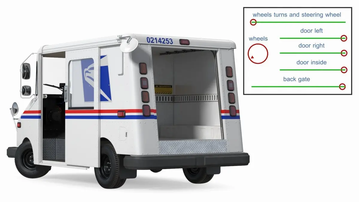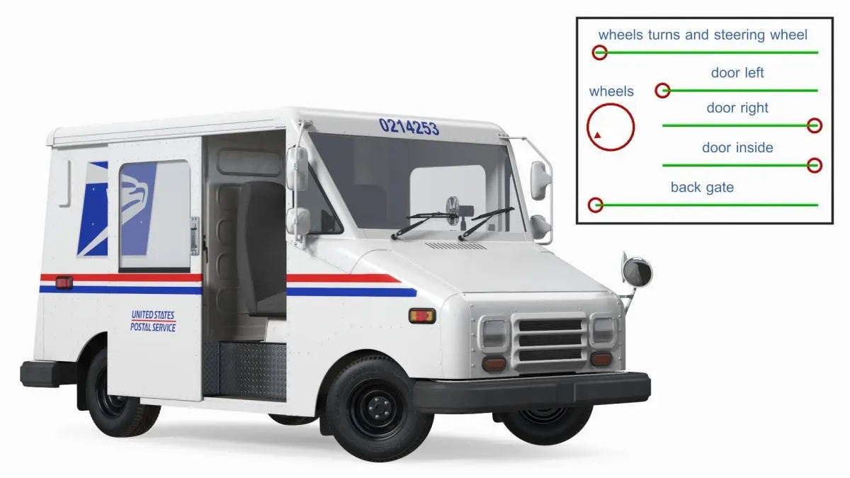 Grumman LLV USA Post Car Rigged is fully rigged and is ready to be animated. You can easily position it the way you need or animate it the way your project requires using helpers in 3D Studio Max. See the turntable to get an idea of how rigging works.