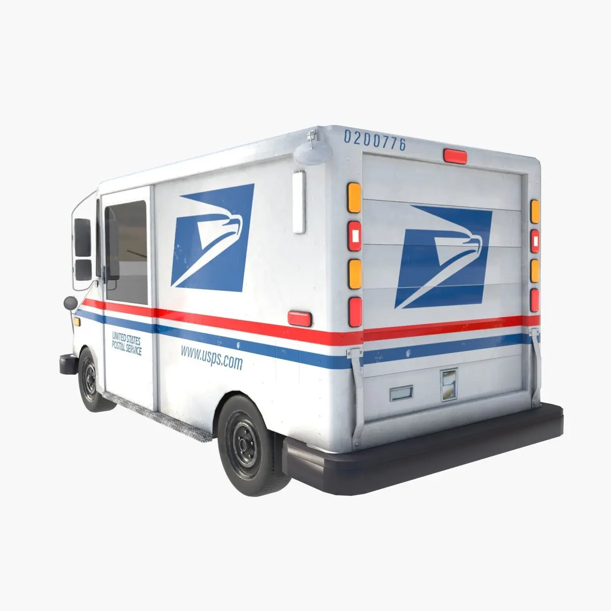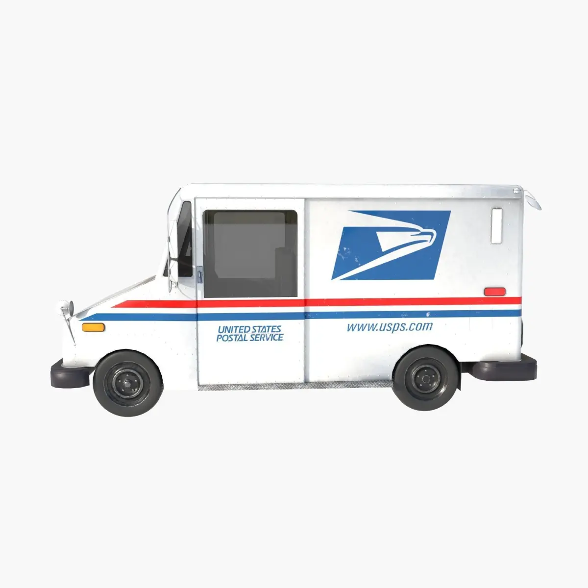In the United States, the Grumman LLV is the most common vehicle used by letter carriers for curbside and residential delivery of mail, replacing the previous standard letter-carrier vehicle, the Jeep DJ-5. Curbside delivery from a driver seated in a vehicle to a curbside mailbox is sometimes termed mounted delivery, in contrast to walking delivery. The Grumman LLV entered service in 1987. The USPS bought over 100,000 of these vehicles, the last one in 1994. Approximately 140,000 LLVs are in the USPS delivery fleet. A number were also sold to Canada, Mexico, and several other countries. You can configure the inclusion of headlights, turn signals and brake lights, side lights and flashing lights. An emissive map was made for this purpose. The model was made in Cinema 4D 2025, converted to 3DS Max, blender, Unreal Engine 5.5.3, Unity 6000, fbx, etc. PBR textures 4K 4096x4096 and 2K 2048x2048 targa, jpeg, png formats.