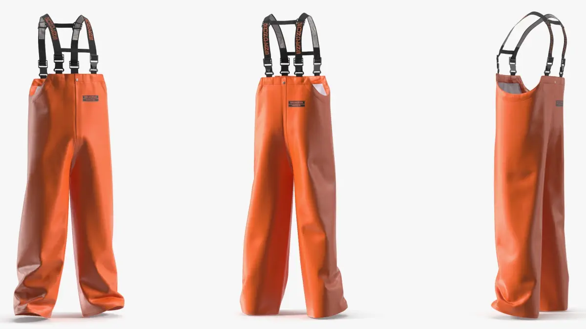 This design model represents durable marine bib pants engineered to protect the lower body in wet, windy, and harsh maritime environments. It combines waterproof materials with reinforced construction to support long working hours on open decks.